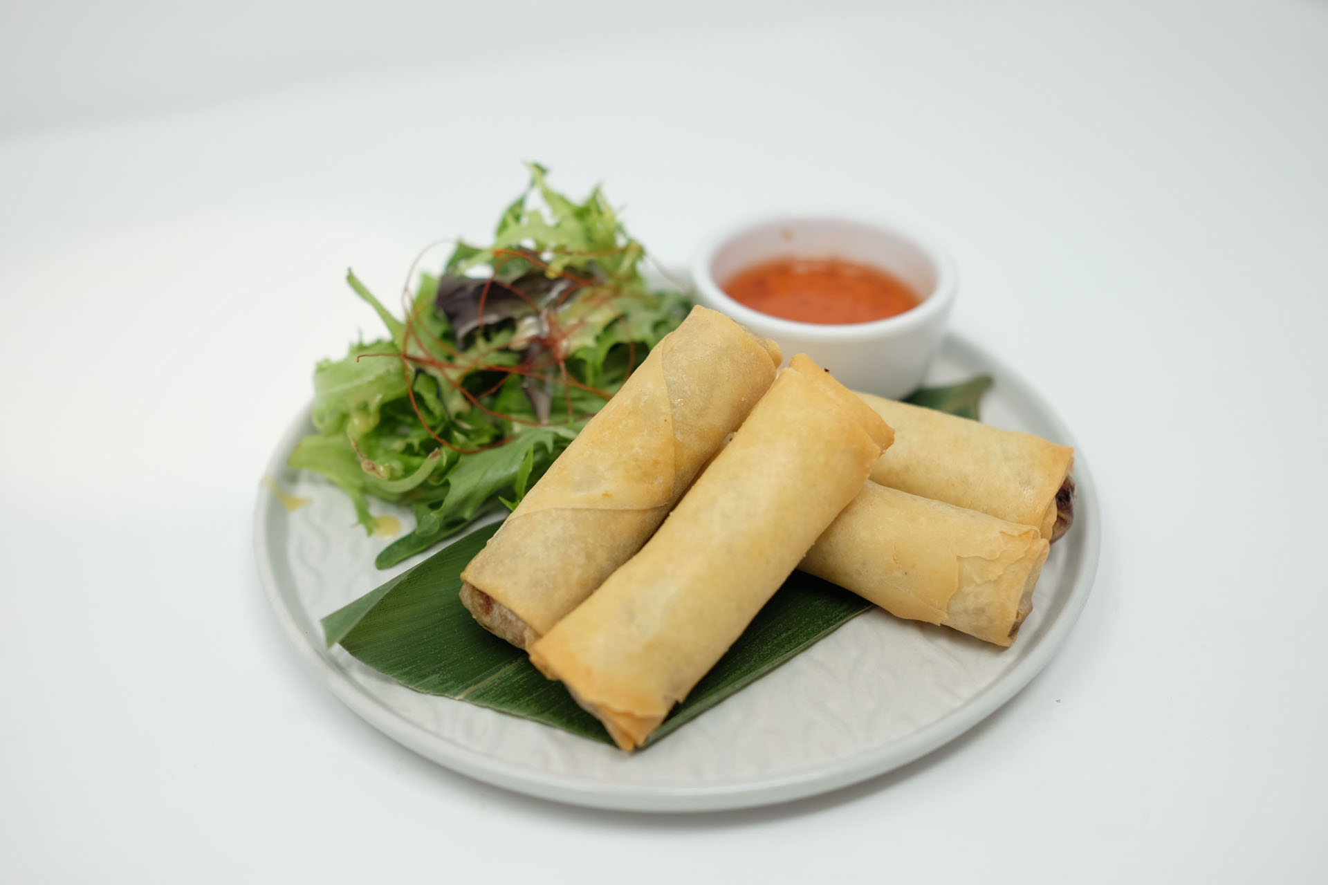 Cabbage, carrot, celery, scallion, cilantro and bean thread noodle served with plum sauce. Price per 30 pieces, Served 12 people.